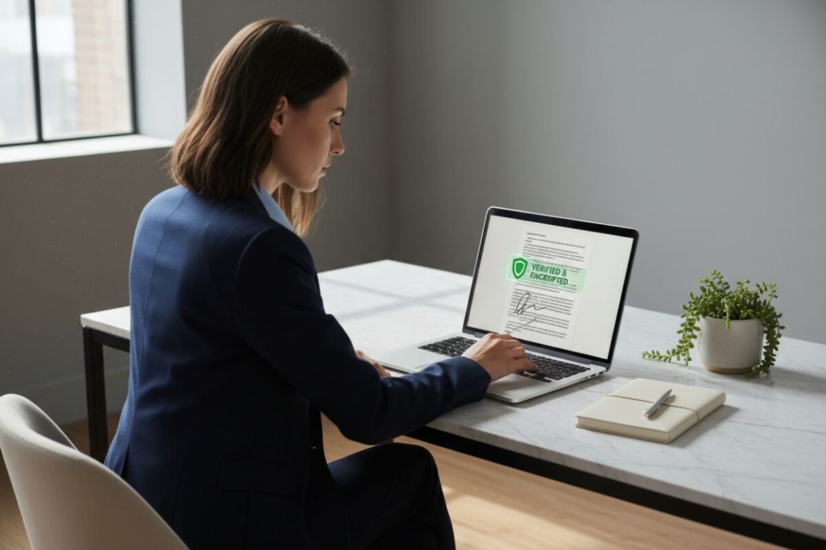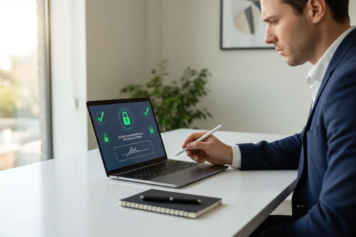 Les étapes incluent généralement le téléchargement du document, l’identification du signataire, l’ajout de la signature (manuscrite, numérique ou certifiée), puis la validation finale. Selon le niveau de sécurité requis, une authentification supplémentaire peut être demandée, comme un code SMS, une vérification d’identité ou l’utilisation d’un certificat numérique.
