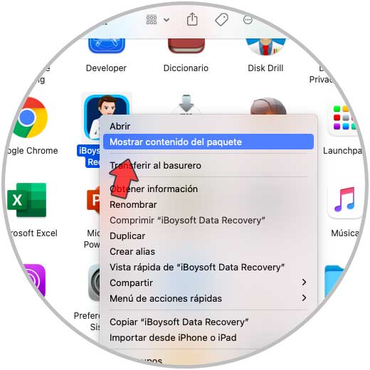 Pour vérifier si un tel outil existe, effectuez un clic droit sur l’application concernée, puis sélectionnez « Afficher le contenu du paquet ».