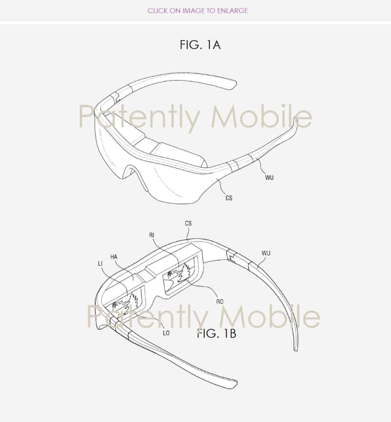Le premier brevet concerne les lunettes à affichage intégré, similaires aux lunettes Google Smart Glasses ou aux lunettes VR bien connues. C’est difficile de dire exactement de quoi il s’agit. Patentlymobile.com mentionne ici une lentille destinée uniquement à l’œil gauche.